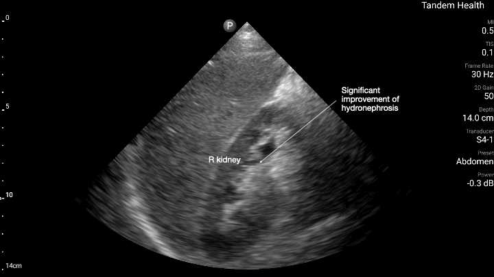 POCUS of his right kidney in clinic with foley in place showing improvement in obstruction.