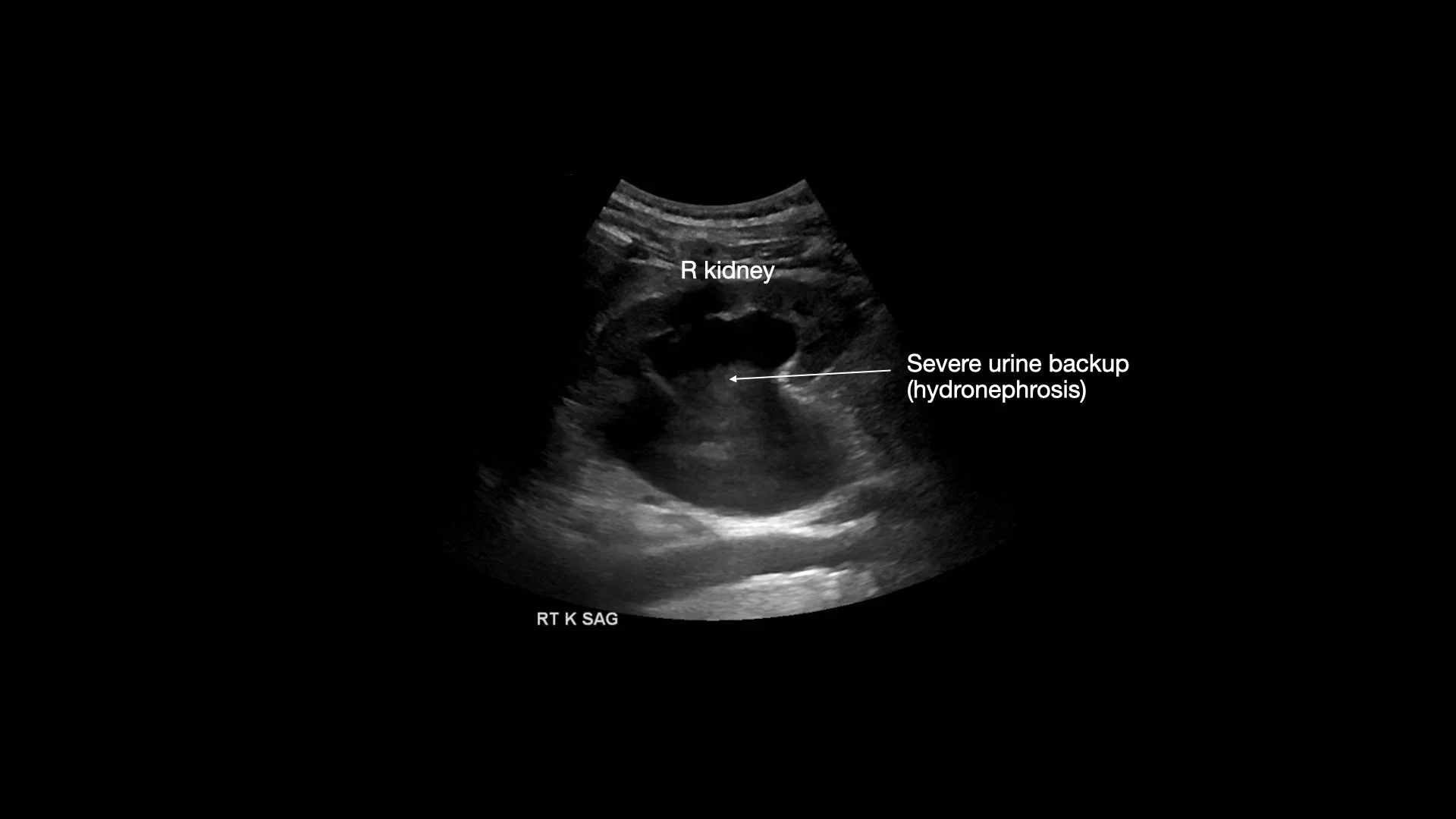 Ultrasound of his right kidney in the hospital showing chronic obstruction with severe hydronephrosis